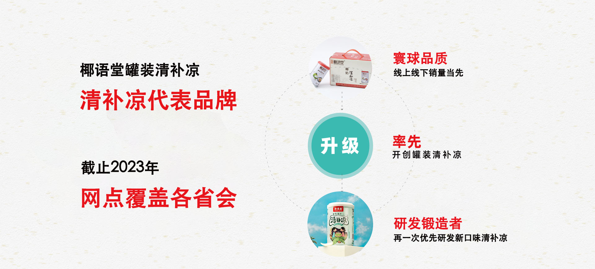 椰語堂始創于2012年,是海南一家把海南清補涼為代表的特色小吃精致化、標準化并進行連鎖發展的企業,椰語堂專注于海南本土地域特色元素特別是椰子系列產品的深度研發。椰語堂被評為海南風味小吃一級品牌名店,椰語堂多款小吃被評為海南名小吃、中國名小吃,并被選為中國地域十大名小吃代表品牌。椰語堂的全國門店分布在各高端商場、機場、郵輪、五星級酒店、動車站、景區等。椰語堂清補涼被選為博鰲亞洲論壇專供產品、中國國際養生食品博覽會金獎等殊榮,椰語堂清補涼在線下各連鎖賣場、盒馬鮮生、中石化易捷、中石油昆侖、全國30多家機場、五星、七星酒店等渠道銷售并成為政府及集團采購產品。在電商線上渠道,椰語堂椰奶清補涼無論在銷量和好評方面是品類第一,是深受消費者喜愛的高品質產品。椰語堂是海南大學食品學院研究生實習基地,公司發揮椰語堂研究院優勢,擁有產品研發方面的多項專利。椰語堂因為其優秀品質及良好顧客體驗,被中央電視臺、湖南衛視、旅游衛視等多家衛視、人民日報、中國縣域經濟報、新浪、騰訊、SSBD等國內外媒體報道宣揚。椰語堂是海南文化的傳播和弘揚者,是海南地標美食品牌的優秀代表和海南地域文化的一張亮麗名片,同時,椰語堂也是中國連鎖經營協會會員單位。